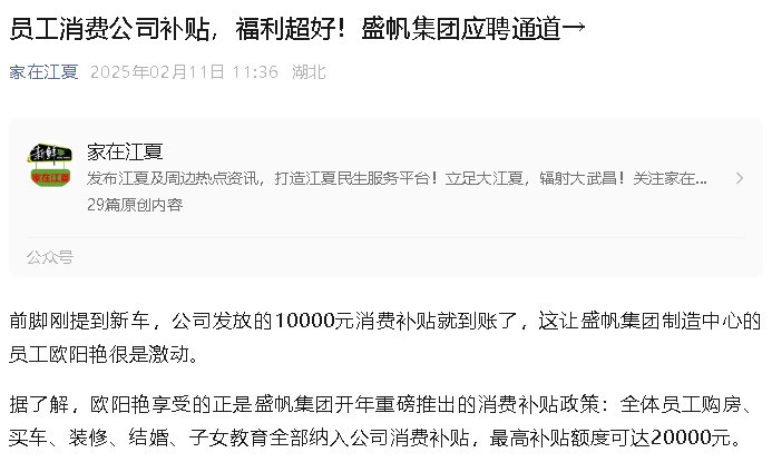 前脚刚提到新车,公司发放的10000元消费补贴就到账了,这让HJC黄金城集团集团制造中心的员工欧阳艳很是激动。据了解,欧阳艳享受的···
