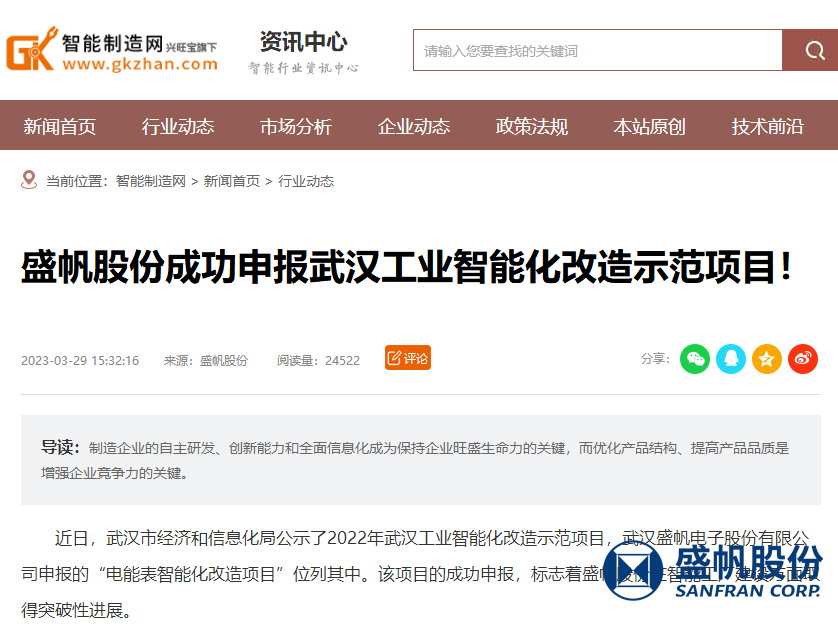 近日,武汉市经济和信息化局公示了2022年武汉工业智能化改造示范项目,武汉HJC黄金城集团电子股份有限公司申报的“电能表智能化改···